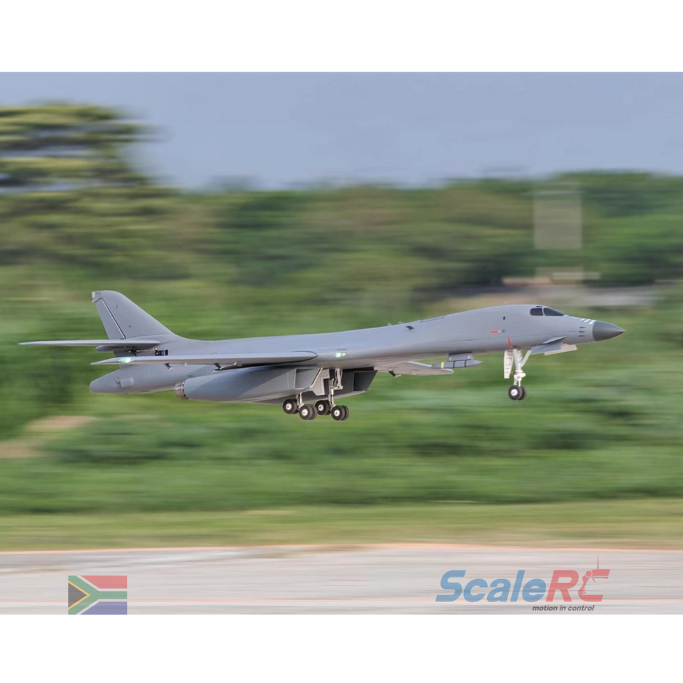 The B-1B Lancer RC model is a highly detailed and realistic replica of the legendary B-1B Lancer strategic nuclear bomber flown by the U.S. Air Force. With 8 operable channels, including Aileron, Elevator, Throttle, Rudder, Retracts, Flaps, Sweep Wing, and an optional Reverse Thrust, this model provides hobbyists with full control over all its flight systems. The scale functional large swept wing, designed for optimised high-speed and low-speed flights, combined with the "Galaxy-X7" 70mm 12-blade EDF system, results in fantastic performance with virtually instantaneous throttle response. The scale retractable shock-absorbing metal landing gears, complete with sequenced gear doors, and the factory-installed LED navigation and landing lights, add to the realism of the model. The scale functional flaps improve the takeoff and landing, while the integrated wing connectors provide easy installation or removal of main wings. The model is fast and easy to assemble with no glue required, and includes a Pulsar 3-Axis Stabilization Gyro System for improved stability and control. The durable EPO flex foam construction makes this model both lightweight and impact resistant.