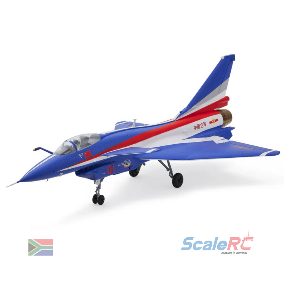The J-10 EDF Jet features a unique delta wing and canard design for exceptional high-speed handling and also agile low-speed maneuverability. Using common 4S batteries, it is powered by a 64mm ducted fan with a brushless motor and a 40A ESC which helps to replicate the sound of a fighter jet. High-fidelity details include detachable weapon sets, an air refueling probe, navigation lights, and CNC-machined landing gear. Made from EPO 40 foam, it offers impact resistance and a water-resistant paint finish. The J-10 EDF jet is easy to assemble. Experienced modelers can complete assembly in about thirty minutes. Optional paint schemes are also available.