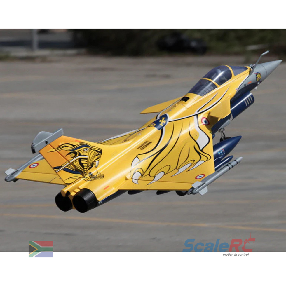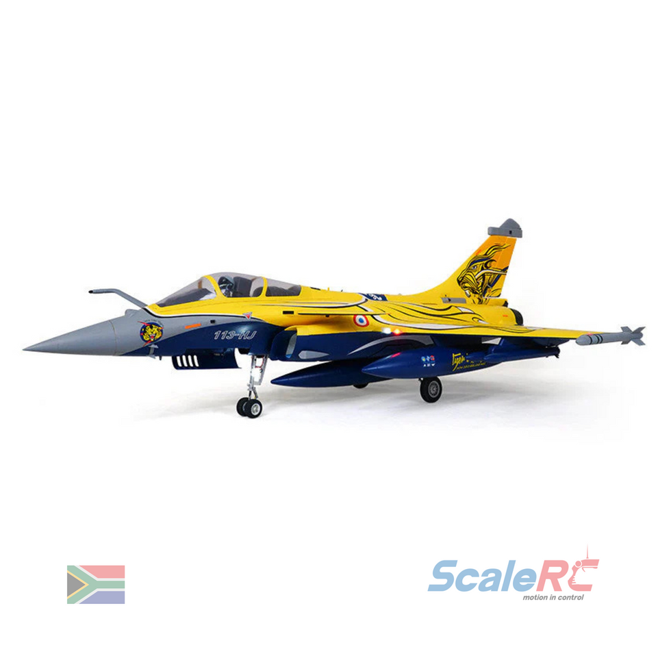 FMS 80mm Rafale features an attractive trim scheme, excellent scale details and fully functional canards- allowing the aircraft to be truly unique when compared to other 80mm EDF aircraft. Details such as the pilot, cockpit interior, panels, removable armaments, auxiliary fuel tanks, refueling probe, targeting sensor etc; dynamic features such as functional LED navigation and landing lights, CNC shock-absorbing electric retracts, functional canards and flaps etc.