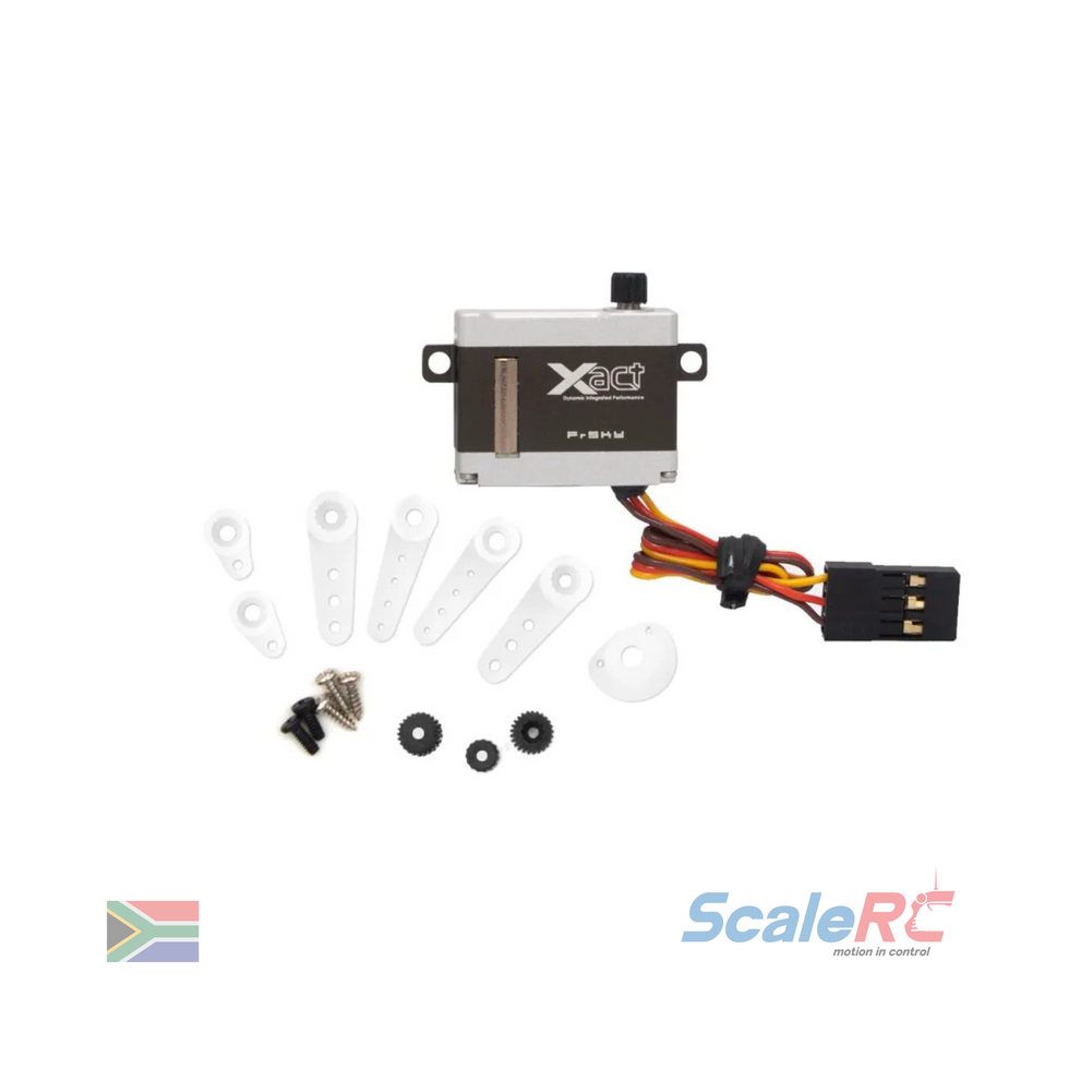 Also, the Xact series servos offer multiple form factors and configurations to fit different model types and precision usage. Working with the FBUS protocol, the telemetry data (like real-time current, voltage, etc.) of Xact servos can be achieved and transmitted back to the radio, and parameters like the servo center point and travel degrees for the configurations can be set easily with flexibility on FrSky radios.