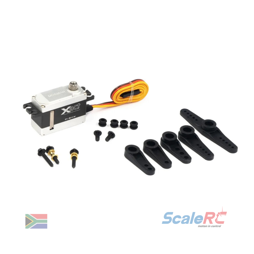 The Xact series coreless servos utilize a fully CNC machined aluminum protective case and benefit from metal gears. These high-voltage servos are capable of supporting up to 8.4V and offer both high speed and torque performance. The Xact series servos are available in multiple form factors and configurations to fit many different model types especially where power, reliability, and precision are required.