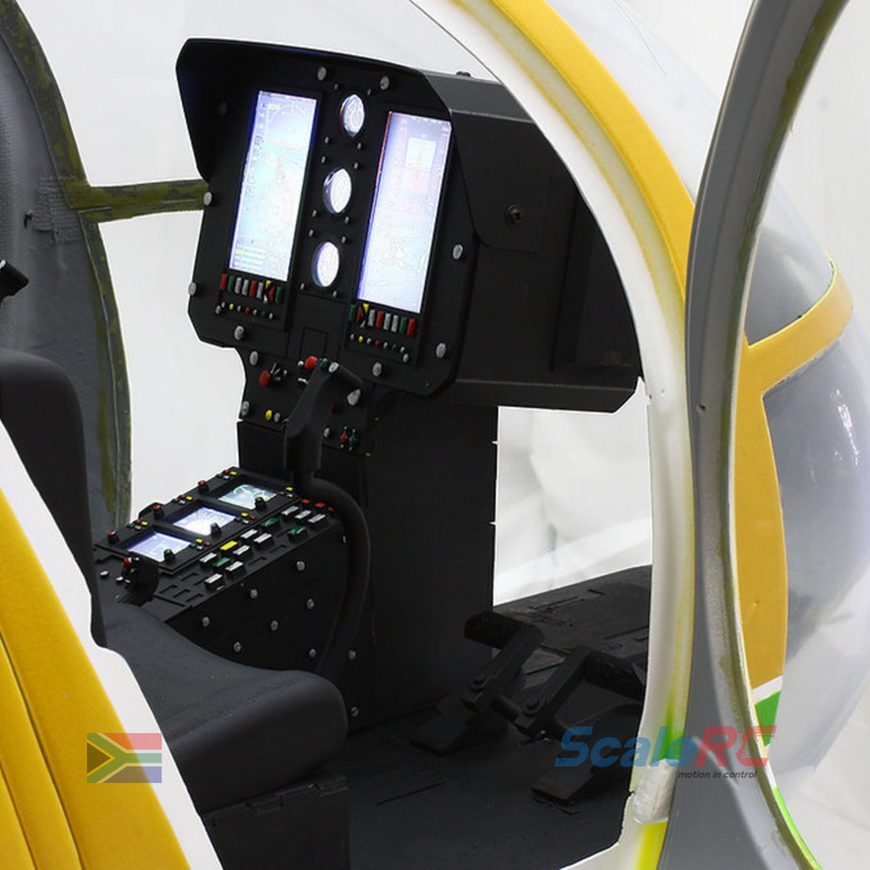 This kit comes with a fully illuminated scale detail cockpit with illuminated dashboard, joysticks, rudder pedals, aerials, windshield wipers and more. Full rear cabin interiors are included (not installed). Floor and ceiling details can be crafted so once the interiors are installed you have an impressively scaled cockpit/interior.